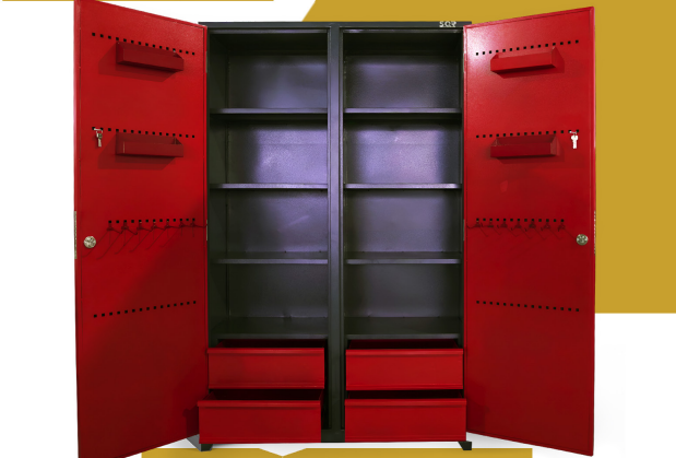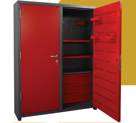 NAME: TOOL CABINET MEDIUM MODELE: SQCM13025 DIMS: 130*55*205 CM دولاب عده ضلفتين منفصلتين مصنوع من صاح سمك 1مم لضمان قوه وتحمل عالى مما يساعد على