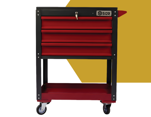 NAME: TROLLY 3 AND1 MODELE: SQTD31025 DIMS: 70*45*90 CM ترولى عده فارغ 3 ادراج ورف سفلی مصنوع من صاح سمك 1 مم لضمان قوه وتحمل